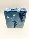 Fairies frolic under a starry twilight sky in this handmade soap sure to make you feel magical. There's even sparkling pixie dust on top! This artisan soap is scented with one of my favorite soap fragrances that expertly combines the smell of bergamot, tangelo, starflower, iris, rose, and light musk.